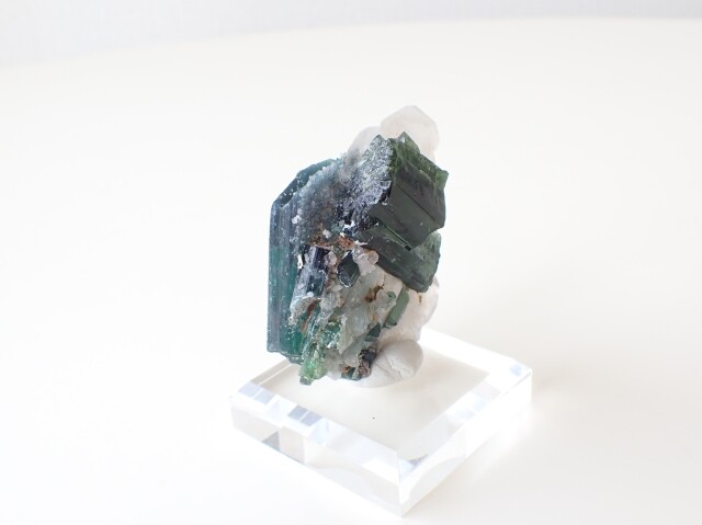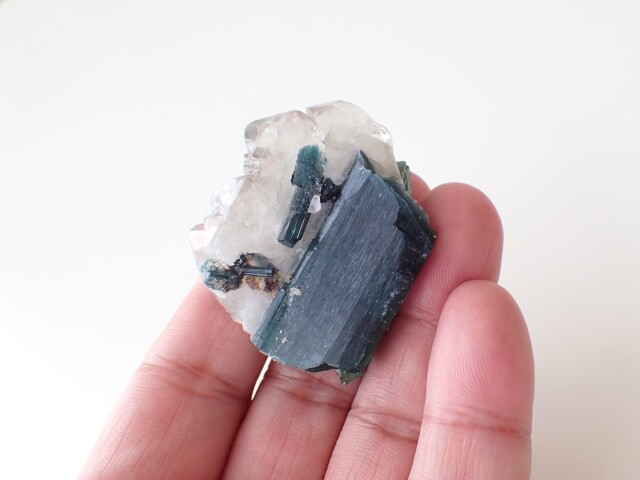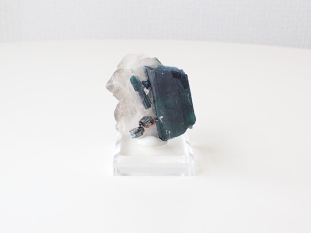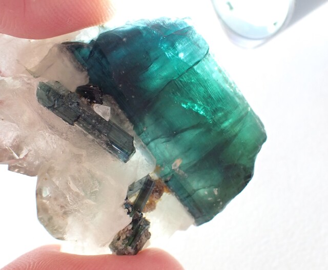 こちらは水晶と共生しており、インディゴライトの裏側にはヴェルデライト(グリーン)の
