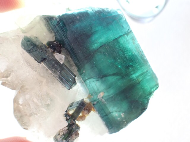 ナトリウムとリチウムを多く含むエルバイト(リチア電気石)の中で青緑~青~藍色