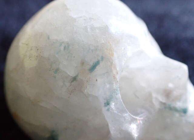 TA0612 【プレミアム】 パライバトルマリンインクォーツ スカル 42.7g ☆宝石鑑別書付き☆