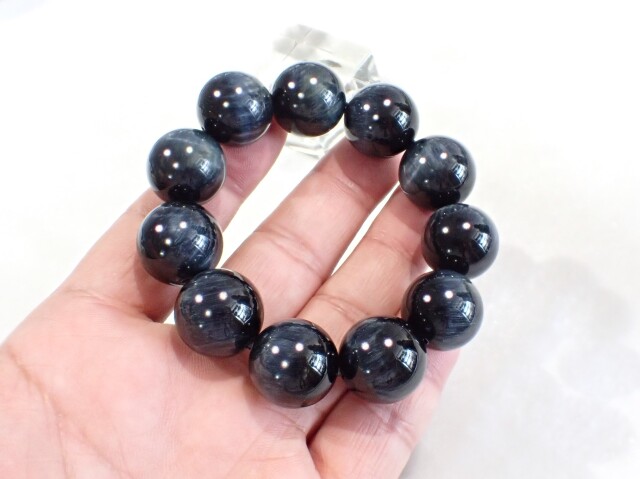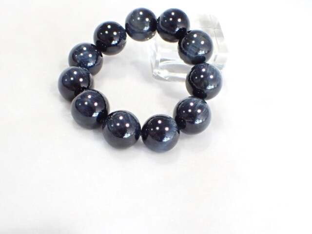 産地:南アフリカ共和国産 ブルータイガーアイ 約18mm×11粒 腕回り:約14cm