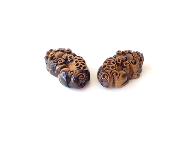 産地:南アフリカ タイガーアイ/ヒキュウ(貔貅) 一対(穴あき)