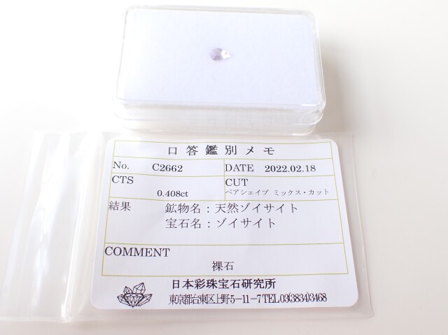 産地:タンザニア メレラニ鉱山 ピンクタンザナイト(ゾイサイト) ルース ソーティング(口答鑑別メモ)付き