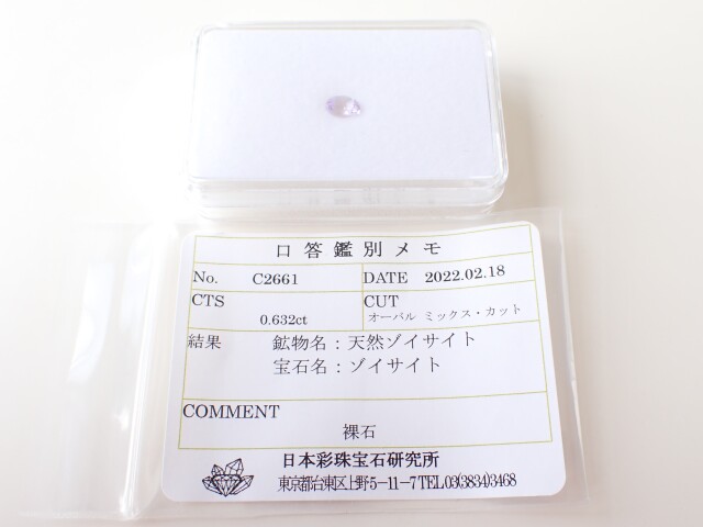産地:タンザニア メレラニ鉱山 ピンクタンザナイト(ゾイサイト) ルース ソーティング(口答鑑別メモ)付き